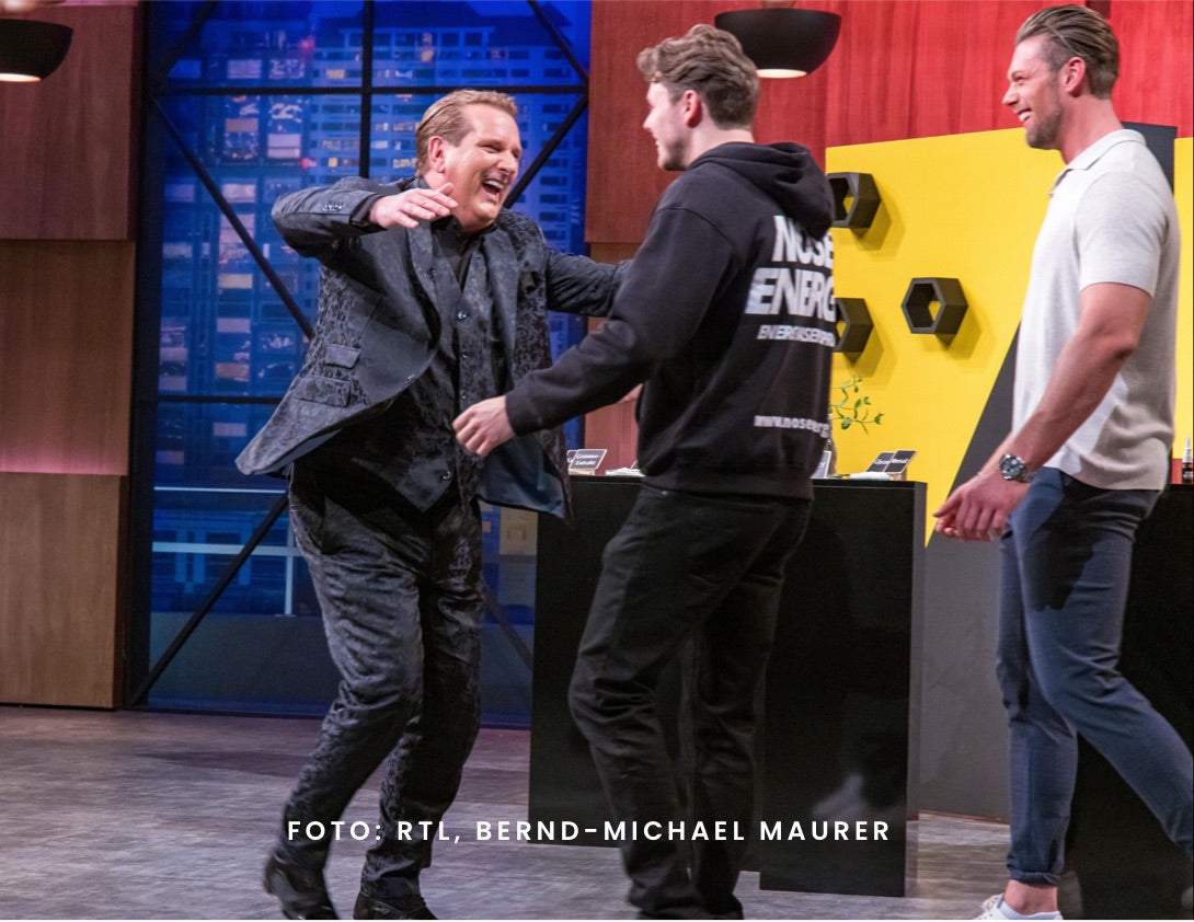 Trotz der Aufregung konnten wir mit unserem innovativen Wachmacher für die Hosentasche überzeugen: Den Deal schlossen wir mit niemand Geringerem als mit Löwe Ralf Dümmel! Da war die Aufregung schnell passé – stattdessen haben wir gefeiert ! Wir können es kaum erwarten, mit Ralf in die Zukunft von NOSE ENERGY zu starten und freuen uns riesig auf alles, was da noch kommt!